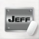 Silver metal plate chrome grunge surface background with four screws added on each corner is a fun 3d mousepad. "Jeff" text with bold style font that also contains screws —design is realistically printed , not real metal or screws— the perfect match for this mousepad. Great for Father's Day, birthdays, etc. Easily personalize by changing or adding any text or image, or change, or delete this background template with your own photo or image. Style of text and the color of the text can also be easily changed. A strong, industrial strength mousepad. Show him how strongly you feel for him all year long!