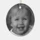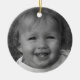 A simple way to include memories to your seasonal traditions, this round ornament displays your custom photo on one side. On the other side you can add the text you like, by default it's a name and a date, "Sarah 20XX", slightly angled. Perhaps the photo shows a beloved place, and you prefer to mention the location instead of year. The rear side is colored red with a soft beam effect. You can alter effects slightly by customizing the product's background color.