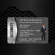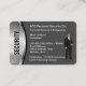 This cool personal security business card is an online editable template with silver tone design element and graphic of a bodyguard in the background of this classic layout you can customize online. Presented on rounded corner business card style that is taller than standard size for more visual impact. Designed for a security service that provides protection for important people and dignitaries.