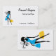 Perfect card for a personal shopper. Blue dress and blue and yellow bags are a sharp contrast to the black silhouette of a trim and tall woman. Customizable text