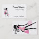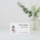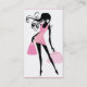 Perfect card for a personal shopper. Pink and black colors with simplistic image of trim and tall woman in pink dress and carrying two shopping bags. Customizable text