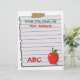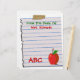 Top 10 Views Zazzle Award! Personalize this cute custom letterhead, "From The Desk Of", with any name on this fun, torn, lined notebook paper taped to a clean white background with ABC in red letters and a red apple illustration on the bottom. Or, just leave out the text entirely. Easily change the white background color and text style and color. Makes a great custom gift for teachers. Personalize some today! Great for Back To School!