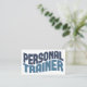 A bold fitness trainer business card that says "Personal Trainer" in shades of blue. Feel free to change the background colors to anything you like.