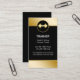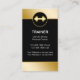 Personal trainer business cards with gold colored barbell with emblem and gold colored design elements. Customize the white background color or personalize the text to make this your own. Designed for personal training service, workout gym, or bodybuilding. The gold colored accents give your business card template a classy and elegant look for a best first impression.