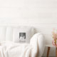 Photos are square, and will be outlined by a tiny white border. The main frame on this version is colored silver, and there exist similar pillows with frames in various colors.