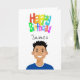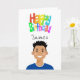 Cute Illustration of a character of any gender with customisable text inside and out and colourful Happy birthday text on the front. All elements can be moved, resized and all the colours can be changed.