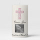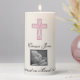 Baby girl baptism, Christening candle with space for baby photo. Personalised candle with picture of a cross and custom names and date. Would make a good gift from godparents or family.