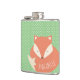 Personalised Cute Sleeping Fox Green Polka Dot Flask