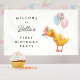 This beautifully designed birthday sign features a cute yellow duckling wearing a pretty floral crown and holding three balloons. A perfect backdrop for your son’s or daughter’s duck-themed birthday party. Fully customisable. Perfect for any age 🤩 Editable templates from Motif Visuals Design. Making buying more enjoyable and convenient 🤗