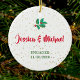 Personalised Engaged Gold Stars Holly Red Green Ceramic Ornament