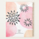 This pretty pastel pink planner is decorated with a hand drawn abstract floral pattern on a watercolor background in shades of pink and coral.