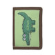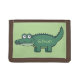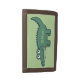 Smiling illustrated alligator on personalised tri-fold wallet for kids.