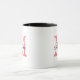 Personalised mug with elegant name monogram letter. Vintage monogrammed ringer coffeemug with stylish script letters. Cute birthday or party favor gift idea for men and women. Stylish 11oz cup with elegant coral pink and black colors. Also available as extra large oversized mug and big to go travel mug. Double sided design drinkware for office or home.