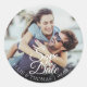 Personalised Names Photo Script Save the Date Classic Round Sticker