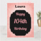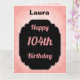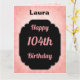 Pretty pastel pink and black personalised 104th birthday design greeting card.