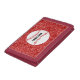 For the baseball fan, a fun design featuring a baseball with customizable text for the name or initials of the baseball player on a background pattern featuring a white outline of baseballs on a red background.