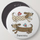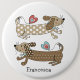 A pattern of cute little sausage dogs happily running along with a heart balloon tied to their tails.