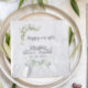 Personalised Wedding Gift "Happily Ever After" green floral napkin | Custom Name Date Keepsake Couple Newly Wed Keepsake Memory Bride Groom Plaque and couple photo at back that can be customized with own photo.