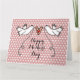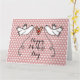 An illustration of 2 beautiful doves holding flowing ribbon with a love heart attached.