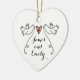 An illustration of 2 beautiful doves holding flowing ribbon with a love heart attached.