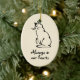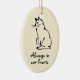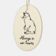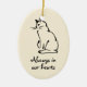 Add Your Cat's Name to Reverse of this Kitty Image Create a keepsake of a much-loved feline friend. This cat memorial ornament shows an ink drawing of a sitting cat and has the slogan 'Always in our hearts'. You can add your own kitty's name to the reverse. The ornament is a delicate bisque shade to tone with any decor.