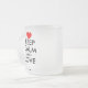 Personalizable Keep Calm love glass mug with little red heart symbol. Create your funny Keep calm and carry on parody. Customize background colors and text the way you want it. Cute Examples: Keep calm and love me. Keep calm and love coffee. Keep calm and love tea. Funny gift idea for mom on Mothers Day.