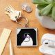 Personalizable silver keychain with a black and white background that you put your own text on to and download your own image on to! Use the personalize and customize options to customize. Background color white can be changed at customize, as well as the font color and style! From HAMbyWhiteGlove aka HAMbWG. Shown with purple text.