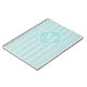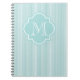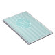 Personalizable Monogram M notebook | Turquoise pastel quatrefoil label. Elegant stripe pattern design. Custom writing paper with name initial letter. Cute gift idea as baby shower guest book for new mom or mother to be.