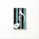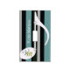 A white musical note with vertical black and blue stripes. Personalize this cool music-themed item with your name and initial letters