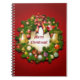 A gorgeous Christmas wreath with holly pine cones, luxurious ornaments, golden bells, silk ribbons, red bows, and poinsettias. Customize it using your own text!