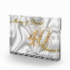 Ornate gold and faux jewels decorate the big 40, gold shadowed name and the word Years- plus script date at the bottom in basic black- all on a draped satin look backdrop. Fully customizable Can be used for wedding anniversary or any other 40 year anniversary- company posssibly? Customize to your heart's content.