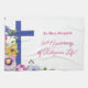 Orange, lilac, pink and blue flowers with green leaves next to a big blue cross, all on white. A very beautiful designed gift, souvenir, giveaway or party essential to congratulate a good Nun on her 50th Anniversary of Religious Life. Let her know you wish her the best and that her good and generous work is very appreciated.