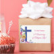 Green leaves, colorful wildflowers, a big blue cross and words in pink. This is the elegant and beautiful Religious gift, souvenir, giveaway or party essential you need for your congratulations on a 55th Anniversary.