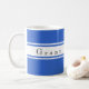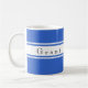 Personalize this coffee mug by entering name under the "Personalize it" tab. To change blue background click the "Customize" button, then "Edit">>"Background" and select a color.