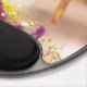 The plastic backing is nice and sturdy. The grippy pads underneath keep the mouse pad where I put it on my table. The pad the mouse sits on is cut well to fit the backing. The wrist pad is perfectly soft, supportive, and thick. I'm left-handed, and this mouse pad works just as well for me as it does for my right-handed friends. I'm the designer of HippieClecticHope products. I'm blown away by how well my intricate fractals turn out on the tangible items in the Zazzle Marketplace. This particular mouse pad ***appears*** like a 3D object... A mathematically-engineered rainbow black opal, inlaid under transparent fabric...