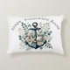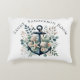 White Pillow Nautical anchor with starfish, shells and flowers, White background. Personalized with a name. Perfect for a beach house, ocean-themed room, and coastal waterfront house decor.