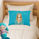 Pillow Whimsical boho mermaid with floral crown, pastel tail, and teal blue background. Personalized with a name. Perfect for girls’ ocean-themed room, coastal nursery, beach house decor, or custom kids’ space with magical undersea vibes.