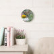 (Personalize)Busy Bee Flower Silver Roman Numerals Round Clock