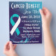 Personalize this Cervical Cancer Benefit flyer with your own words. Have an upcoming cancer benefit, fundraiser, awareness walk, run or special cancer event? Flyers are a perfect way to spread the word about your cause. It also features a bold teal and white ribbon to symbolize Cervical Cancer Awareness. Change the text, type in your own words and make a special custom flyer for your personal cause. Note: The back of the flyer is intentionally left blank for our customers to choose their own image, photos, etc.