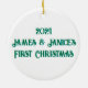 Stained Glass Ceramic Ornament ready to Personalize for new couples celebrating their first Christmas together.