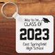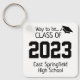 Personalize this Class of 2023 slogan keychain with your high school name. Unique high school graduation favors are gifts for the entire high school graduating class. Give Senior class of 2023 gifts to every graduating senior. These make great high school fundraising ideas to sell in the school store. Order in bulk for the biggest discount. Available in popular school colors. Great for the incoming seniors.