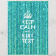 Your personalized Keep Calm saying on a vibrant turquoise decor. A personalized Keep Calm style saying on a one of a kind gift. Humorous or whimsical try on your creative words on two editable lines of text. Remember to use CAPITAL letters for best results.