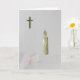 Hand-cut gold candle and holy cross for baptism for baby girl, bright pink bow, hand-glued basis. *Every things you see on the products are hand made, but you must know that you get a photo!