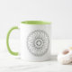 Personalized Gray and Lime Green Modern Medallion Pattern. Need to stop losing that coffee mug at work? Get a personalized style and color of your choice floral medallion coffee mug. No one can steal this one!
