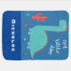 Personalize Green Dinosaur on Blue Background Baby Blanket
