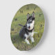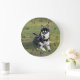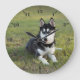 Personalize Happy playful Siberian Husky puppy Large Clock