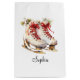Cute gift bag featuring a pair of ice skates with red bow laces and greenery. Customize with ice skater’s name.