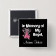 Pay tribute to a loved one or friend whose life was cut short due to Breast Cancer with our customizable "In Memory of My Angel" pins and buttons featuring a beautiful pink jeweled angel ribbon to signify remembrance while also signifying the importance of Breast Cancer awareness, activism and advocacy. Personalize it to change the name. NOTE: To adjust long names, choose "customize it" to edit text size.. As cancer survivors and advocates, we proudly donate to cancer research.