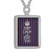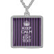 Personalize it Keep Calm Your Text Purple Stripes Sterling Silver Necklace
