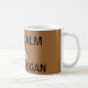 Keep Calm and Carry On mug with custom slogan. Personalize to make your own slogan. Light brown with text templates to customize for any occasion.
